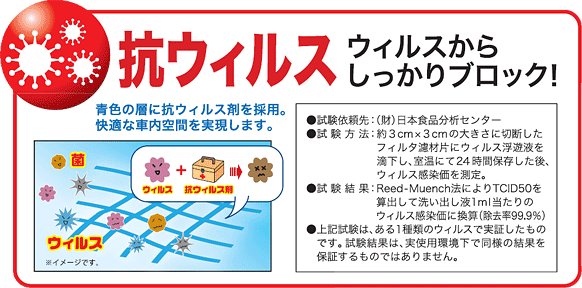 青色の層に抗ウイルス剤を採用。快適な車内空間を実現します。