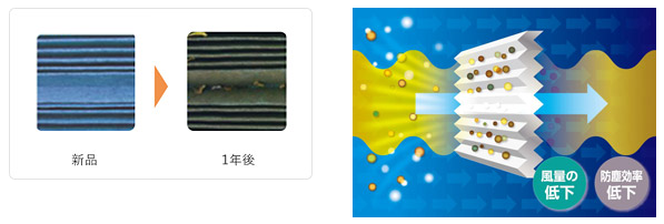 新開発の立体構造帯電不織布ろ材の採用により、高い除塵性能を実現。
