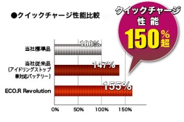 素早い充電が可能なクイックチャージ性能が向上。放電気味使用での耐久性も向上しているので、アイドリングストップ車や“ちょい乗り”の多い方にも安心してご使用いただけます。