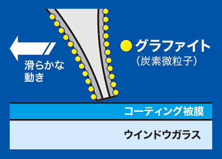 グラファイトラバーを採用しているため、摩擦抵抗を低減し、ワイパーのビビりを低減します。